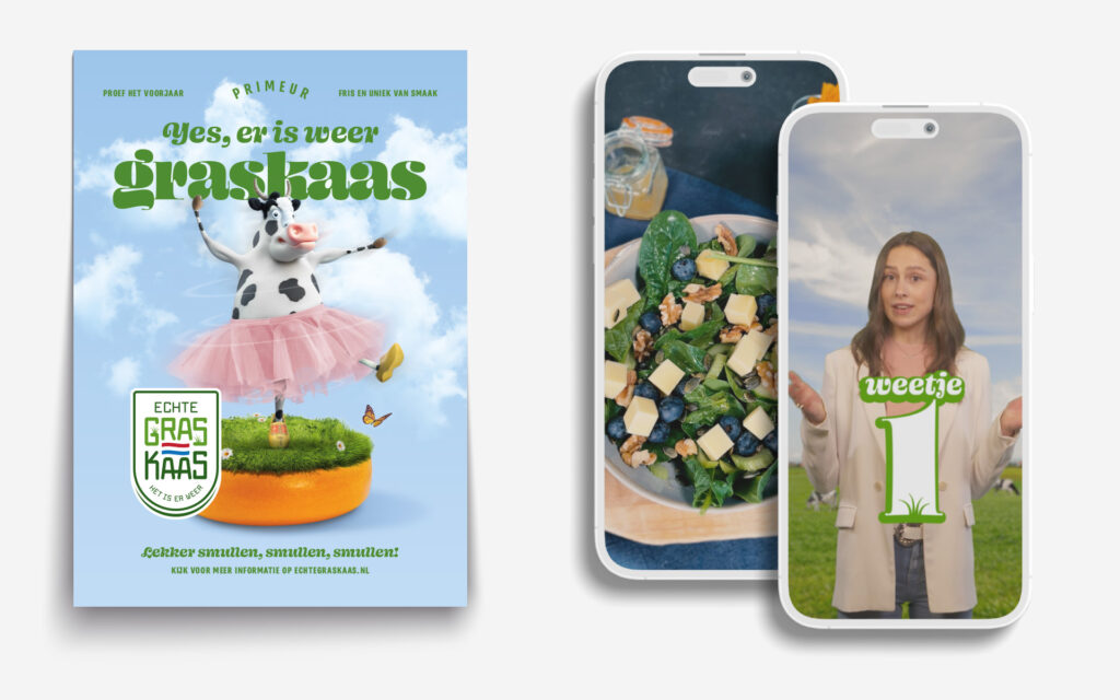 Daarom werken we voor de BBZ – en voor diverse andere opdrachtgevers – met een content- en marketingabonnement. Bij zo’n abonnement betaalt de opdrachtgever periodiek – bijvoorbeeld per maand of per kwartaal – een bedrag, waarvoor wij content- en marketingwerkzaamheden verrichten volgens een strategie of plan. In het geval van de BBZ resulteert dat periodiek in een inhoudelijk vakblad, een nieuwsbrief, het bijhouden van de consumentenwebsite en -socialkanalen (volledig in ons beheer) en regelmatig een toffe video als onderdeel van de serie Land van Boer en Zuivel. Daarnaast werken we jaarlijks aan drie consumentencampagnes: de Graskaascampagne, de campagne rond de Cum Laude Awards en de campagne rond Oktober Maand van de Boerenzuivel. “Het is prettig dat Jan ook met andere zaken meedenkt”, vertelt Marije. “Zo hebben we bij de BBZ te maken met diverse (keur)merken. Jan vond dat de merkenstructuur logischer kon en deed meteen een voorstel. Daar houden we van!”