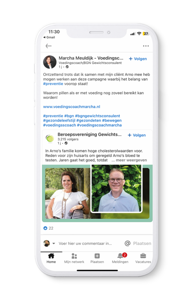 - Voor de Beroepsvereniging Gewichtsconsulenten Nederland (BGN) interviewden we leden over hun meerwaarde in samenwerking met gemeenten en zorgverzekeraars. Het doel? Dat gemeenten vaker de samenwerking met BGN-gewichtsconsulenten aangaan en dat zorgverzekeraars de consulten van gewichtsconsulenten vergoeden. De leden die hun verhaal vertelden werden het gezicht van de campagne en deelden de content ook met hun eigen netwerk.