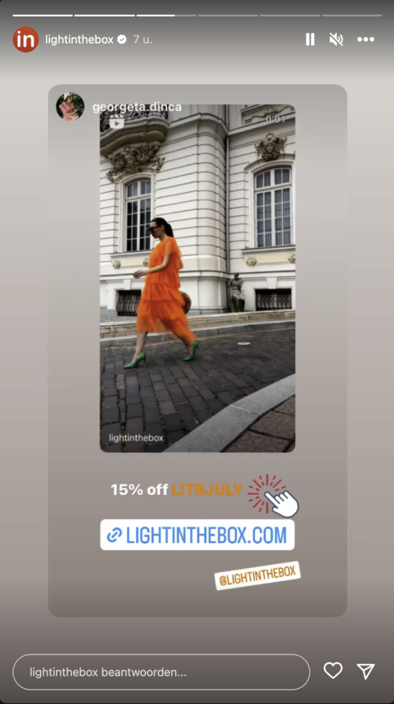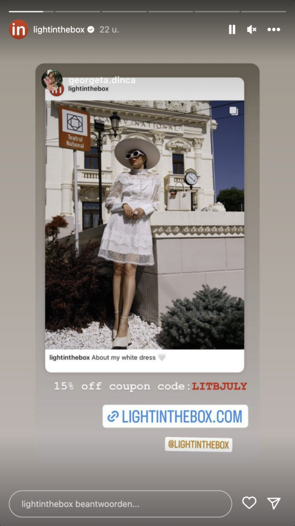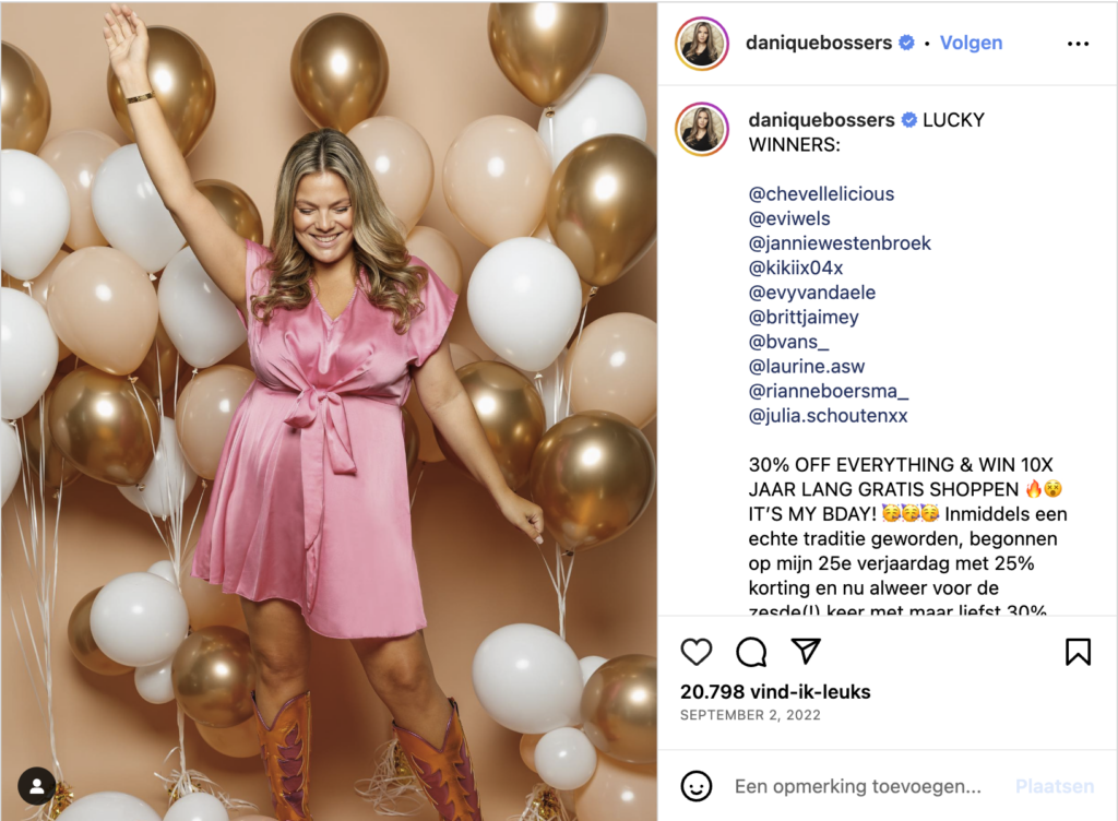 Door gebruik te maken van een promotie- of kortingscode voor je volgers, ontwikkel je interactie. Volgers zullen reageren, hun vrienden taggen en dit nieuws misschien zelfs met mond-tot-mondreclame verspreiden. Het is belangrijk om de promocode in de foto of tekst te noemen en bij de post een goede afbeelding en een bijpassende hashtag te gebruiken.
