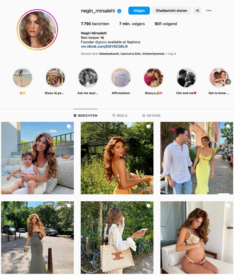 Een voorbeeld van een Nederlander die het wereldwijd goed doet is Negin Mirsalehi. Als je haar Instagram-account met 7 miljoen volgers bekijkt, lijkt ze op het eerste gezicht een gewone, jonge vrouw die van mode, beauty, reizen en lekker eten houdt. Slim, zo kunnen volgers zich makkelijk identificeren. Maar daarnaast is ze een onderneemster in hart en nieren. Wat je niet direct ziet is dat zij en haar vriend achter de schermen een compleet bedrijf runnen en dagelijks een lekker zakcentje verdienen met het posten van foto’s en video’s. (Lees: duizenden euro’s voor het plaatsen van een foto, bijvoorbeeld voor een bekend merk of evenement.)