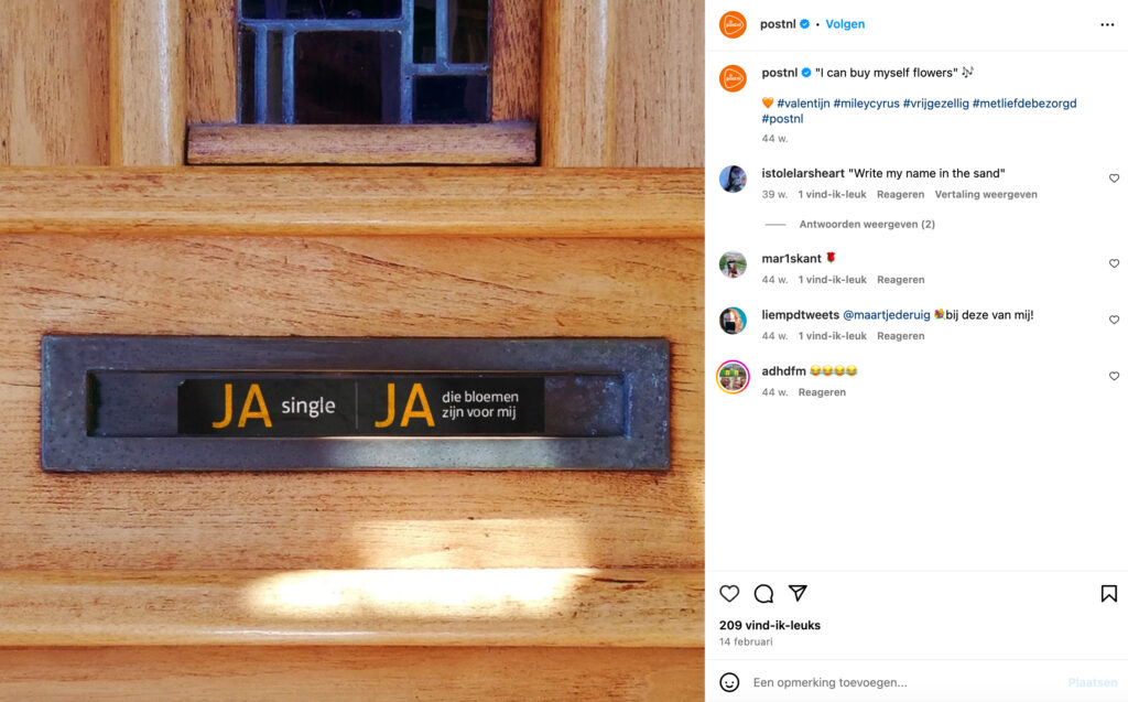 Nog één van PostNL. Een inhaker op Valentijnsdag én op de hit van Miley Cyrus. Van Manon.