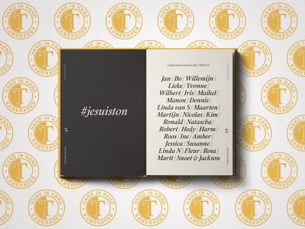 Eenmaal op kantoor stond een American breakfast klaar, maar niet vóór de nodige speeches en natuurlijk een mooi cadeau. Wij maakten namelijk met iedereen die Ton lief is – bij én buiten Vrhl – een supertof boek: Ton 25 jaar Verheuvelio! Een boek vol met anekdotes, herinneringen en wensen aan Ton.