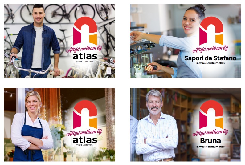 In de beeldtaal staat de winkelier centraal. Zo geven we de winkeliers bekendheid bij het publiek en dat draagt bij aan het ons-kent-onsgevoel dat de Atlas wilt uitstralen.