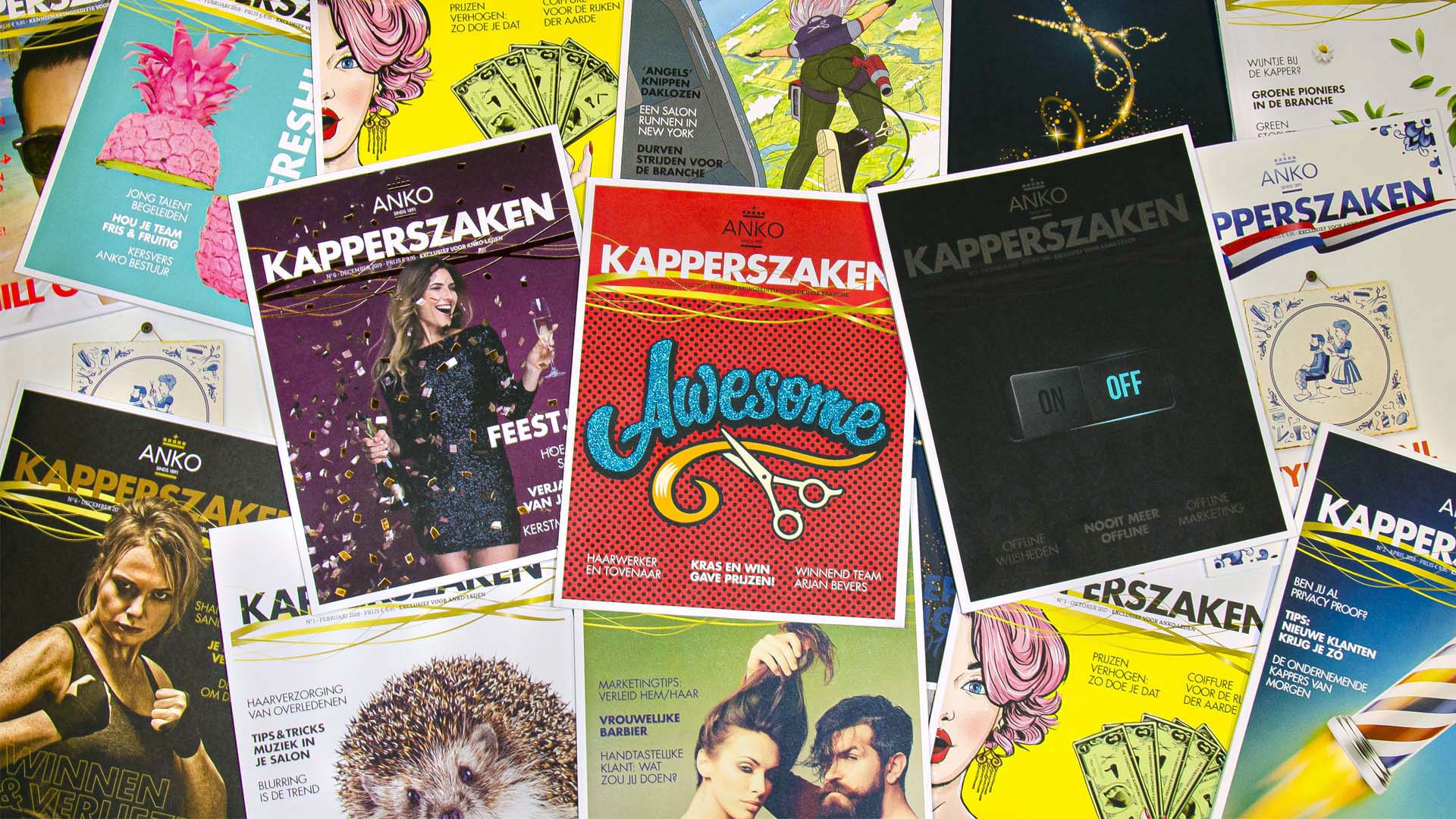 Inmiddels zijn er zestien(!) prachtige edities van ANKO Kapperszaken verschenen met ieder een eigen, onderscheidend thema.  Met de zeventiende zijn we bezig. Zes keer per jaar verzorgen we een groot deel van de redactie, de fotografie en de vormgeving. Jaarlijks doet de ANKO een lezersonderzoek en daaruit blijkt dat vooral de jonge achterban enthousiast is over ‘ons’ blad. En dan zeggen ze dat jonge mensen geen tijdschriften meer lezen… 😉