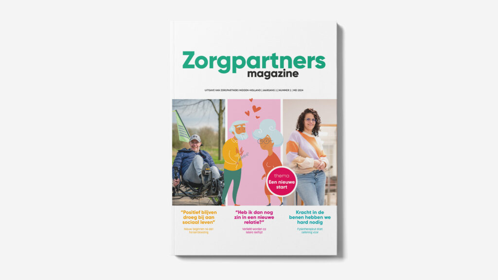 Een magazine had Zorgpartners al. Dat ging vooral over het reilen en zeilen binnen de eigen organisatie. Met hun nieuwe magazine wil Zorgpartners beter aansluiten op de informatiebehoefte van een nieuwe doelgroep: mensen met een beginnende tot iets verder gevorderde zorgvraag. Denk aan mensen die beginnende gewrichtsklachten hebben of die door een val moeten revalideren. Voor deze doelgroep biedt Zorgpartners namelijk ook allerlei diensten, zoals Volledig Pakket Thuis, revalidatiezorg en dagbesteding.