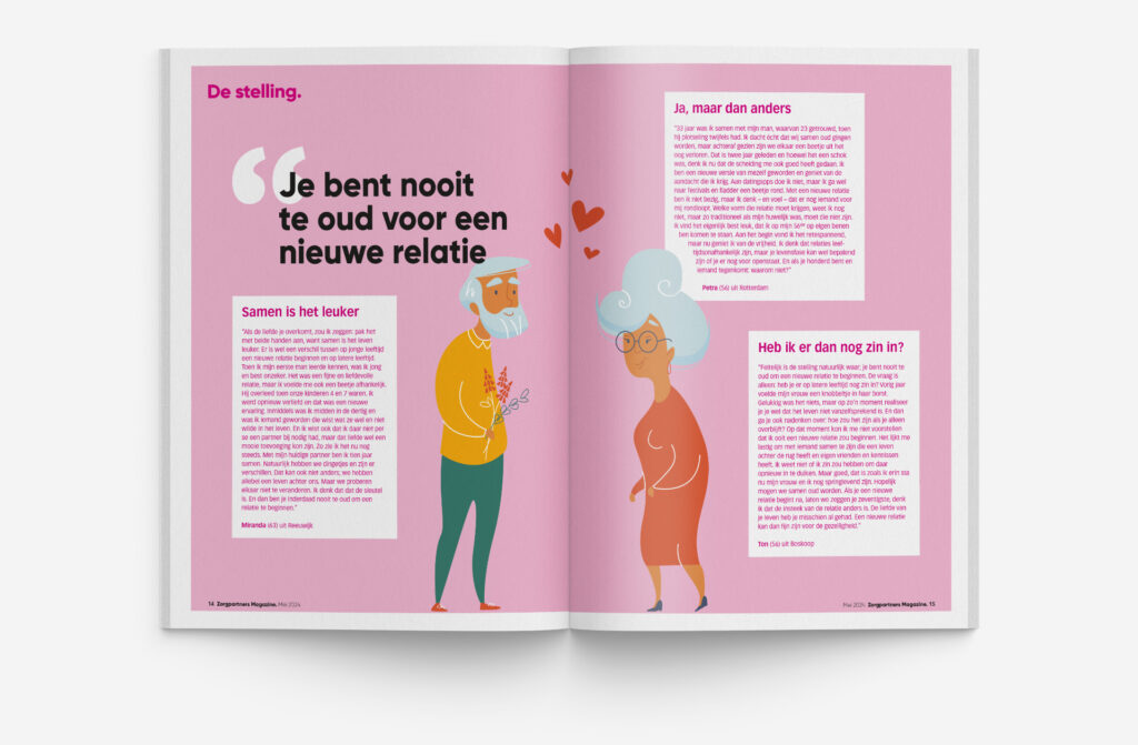 Een redactioneel sterk magazine dat goed aansluit bij de doelgroep die Zorgpartners wil bereiken. Namelijk mensen die mogelijk behoefte hebben aan ondersteuning van de organisatie, nu of in de toekomst. We zijn heel benieuwd hoe het nieuwe magazine ontvangen wordt!