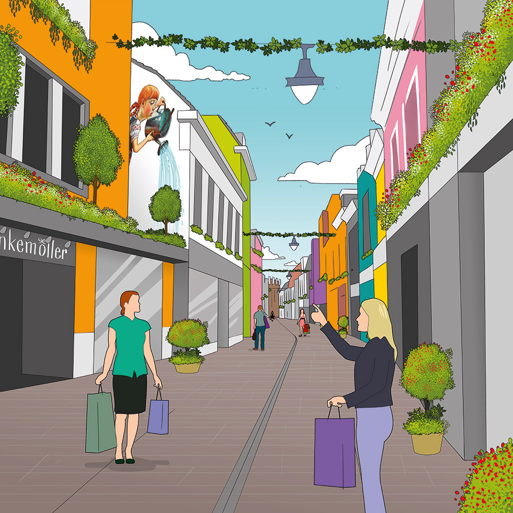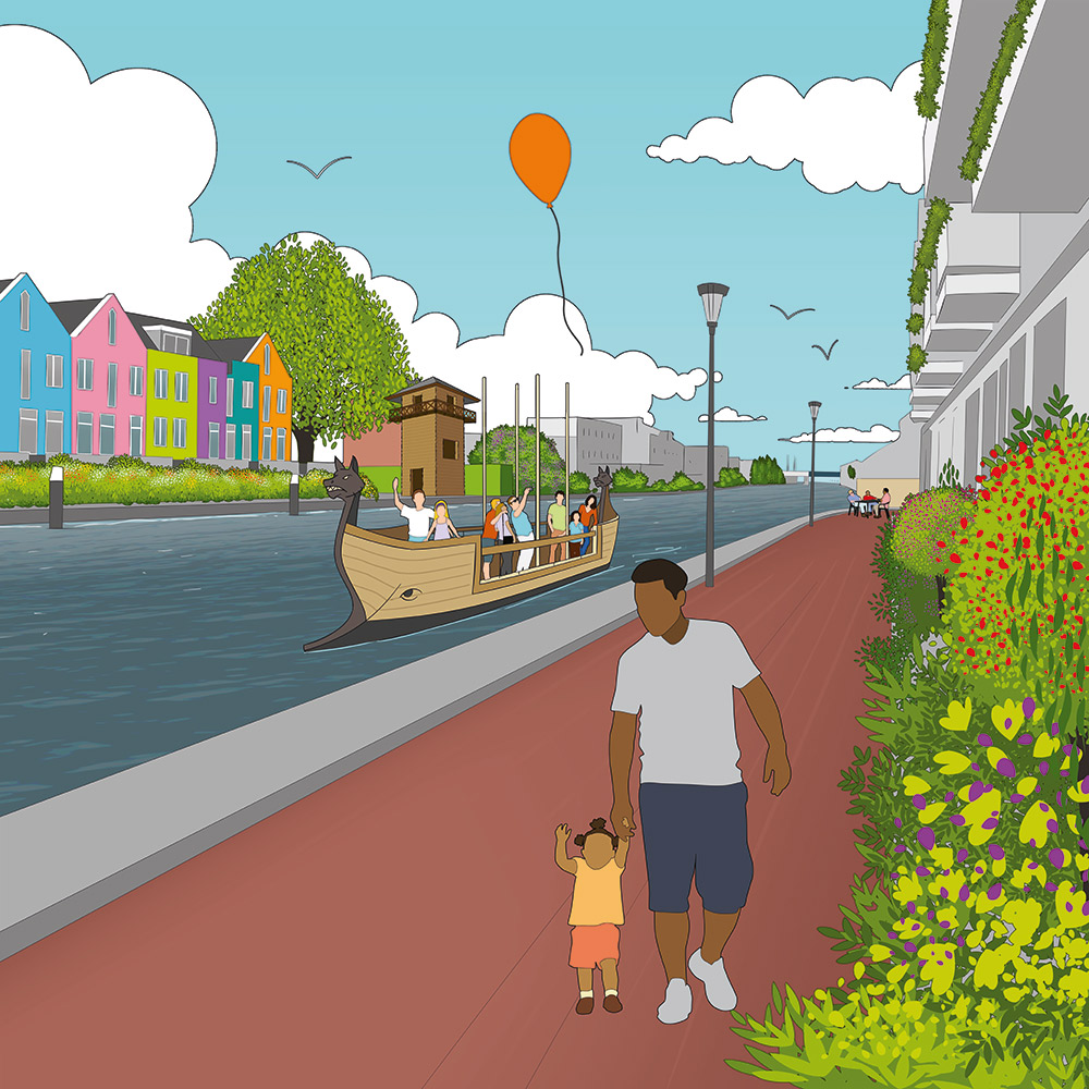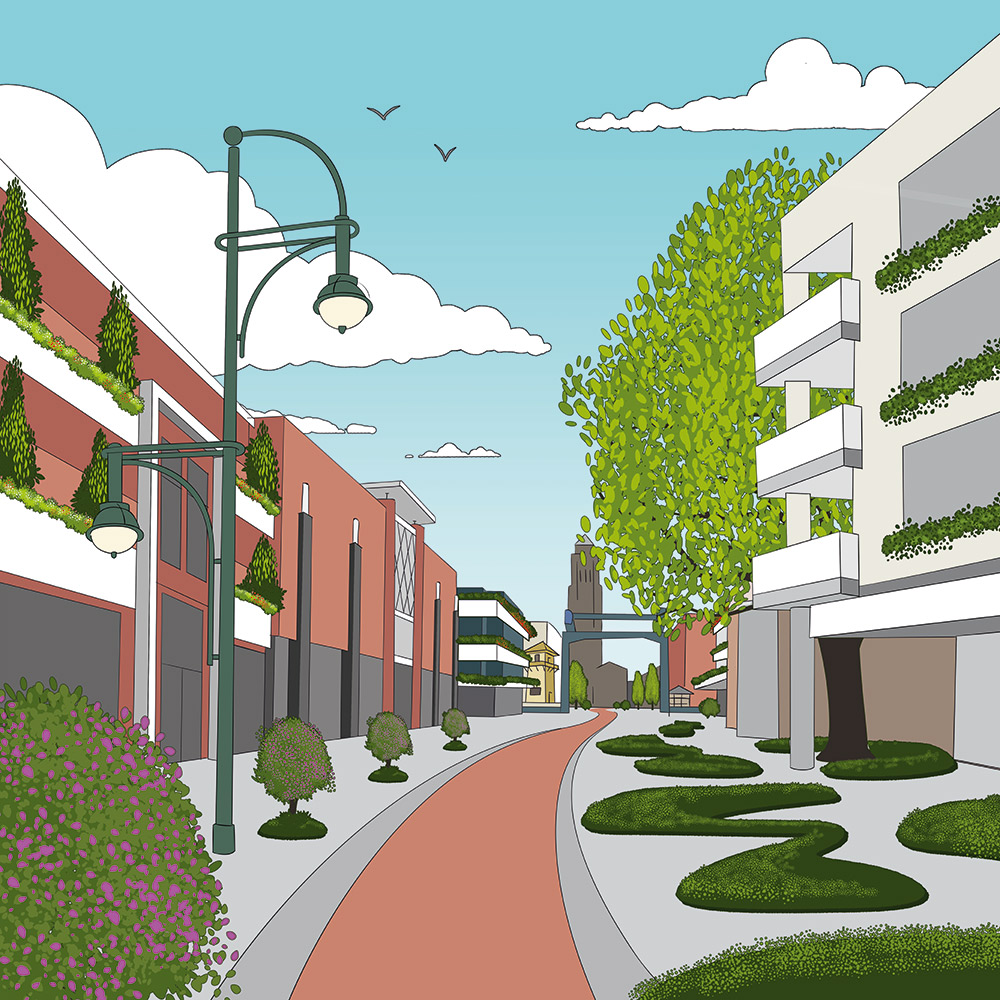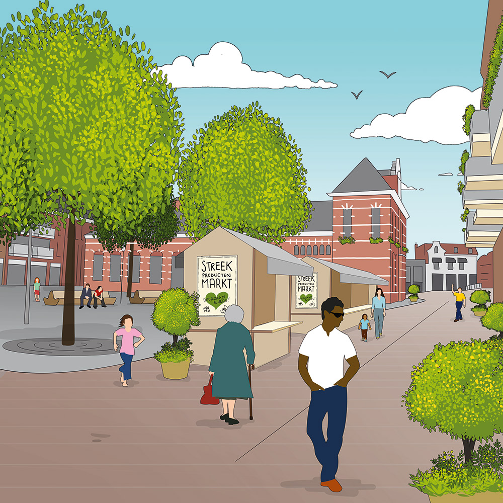 Op zoek naar de ‘wow-factor’ van het stadshart hebben we de vrijheid genomen om te ‘dromen’. Net zoals Walt Disney zijn ideeën in drie fases ontwikkelde: eerst ‘dromen’, dan ‘denken’, dan ‘doen’. Het vuistdikke visieplan is het resultaat van de ‘droomfase’ en bevat een coherente verzameling van praktische ideeën om het stadshart van Alphen op een spraakmakende, duurzame én sociaal maatschappelijke wijze te ontwikkelen. ‘Groen’ en ‘historie’ zijn daarin belangrijke pijlers. Bovendien is het onze overtuiging dat een stadscentrum méér moet zijn dan een optelsom van verkooppunten. Het dient de faciliteiten en beleving te bieden waar ‘jong en oud’ behoefte aan hebben. Dàt maakt een centrum toekomstbestendig. Om onze ideeën ‘tastbaar’ te maken hebben we in het plan de klok vooruit gezet en verhalen opgenomen van inwoners die vertellen hoe zij hun stad in 2022 beleven. Een serie illustraties, gemaakt door Nicolas, onze eigen illustrator, maakt het beeld compleet.