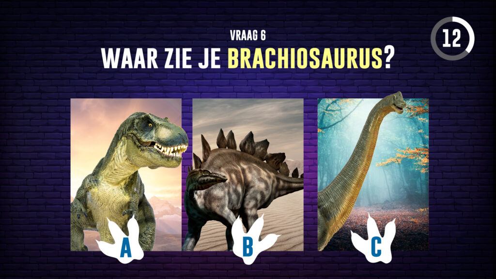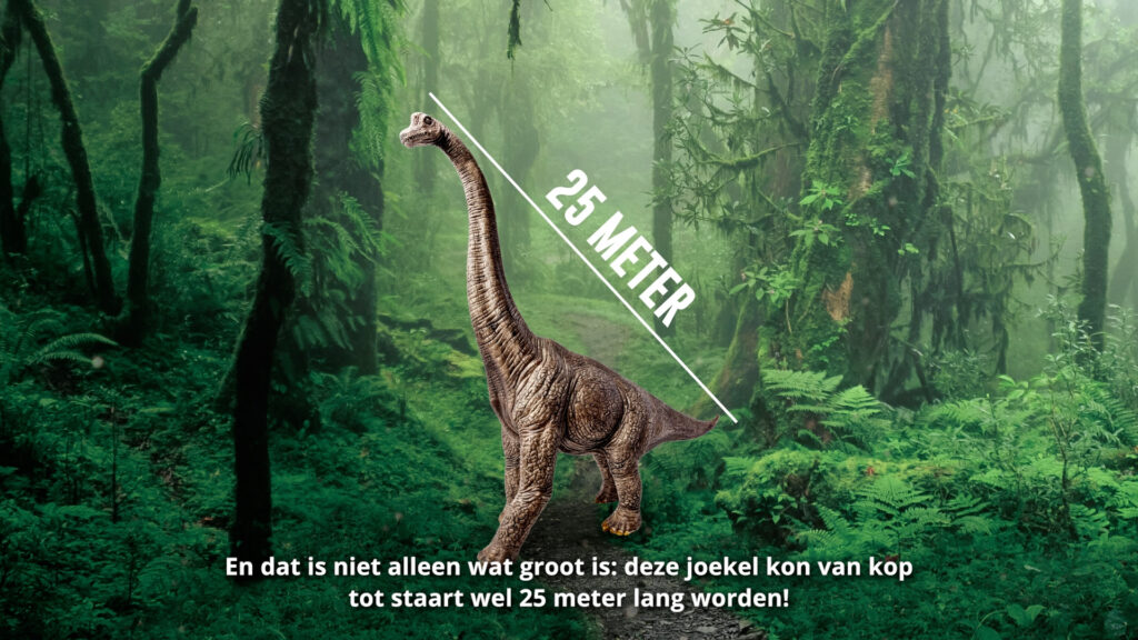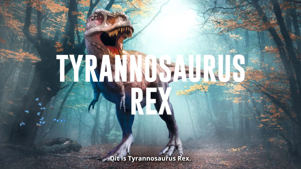 Deze vraag kwam niet helemaal uit de lucht vallen, want onze redacteuren en vormgevers zijn bekend met kindercontent. Zo maakten we advertorials voor Kidsweek en diverse puzzelboekjes voor kinderen van de basisschoolleeftijd. Onze redacteur Yvette bedacht voor deze dinofilm een aansprekend script, dat aansluit op de expositie zelf. “In de video zie je dino’s die je ook tijdens de speurtocht van World of Dino’s te zien krijgt. De film is opgedeeld in drie tijdperken met ieder hun eigen dino’s. Voor de afwisseling en om de spanningsboog hoog te houden, sluiten we elk tijdperk af met een vraag over het betreffende tijdperk, die kinderen tijdens het kijken van de film kunnen beantwoorden. Dit interactieve element zorgt ervoor dat kinderen hun aandacht erbij houden. En natuurlijk kreeg de bekende T-rex de meeste aandacht; die spreekt het meest tot de verbeelding.” Yvette heeft nog een tip om content dicht bij de belevingswereld van de kinderen te krijgen. “Ik werk altijd met voorbeelden die kinderen kennen. De Brachiosaurus was bijvoorbeeld zo zwaar als tien olifanten. Er waren dino’s die zo groot waren als een kip. En sommige vliegende dino’s konden wel 108 kilometer per uur vliegen; dat is zo snel als een auto op de snelweg.”