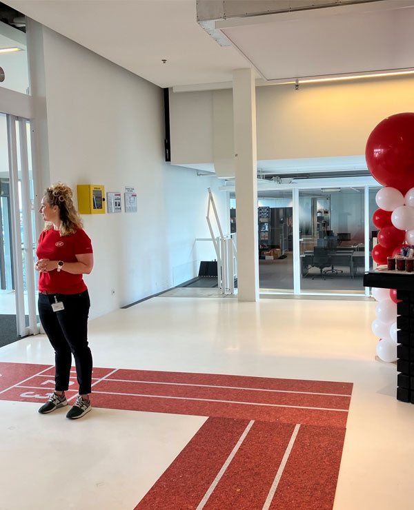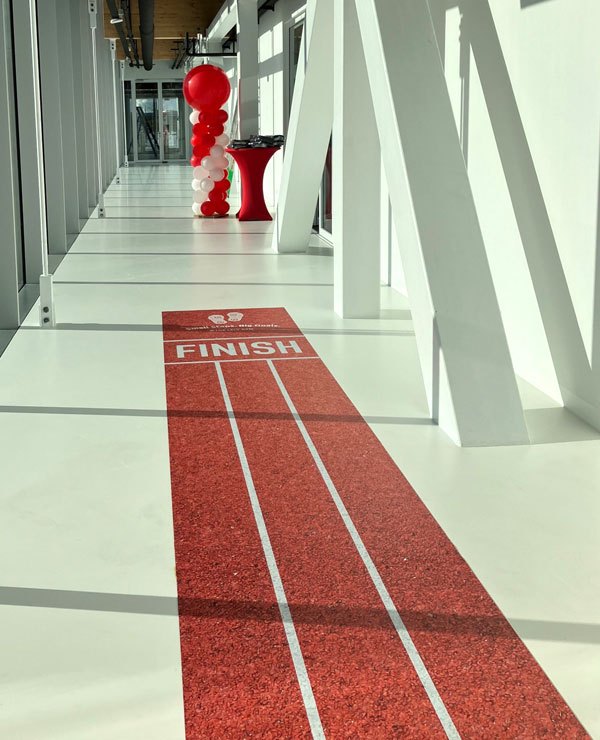 We ontwikkelden posters, roll ups, servetjes voor bij de gezonde snacks, ballonnenbogen en bedachten een atletiekbaan als routebeschrijving richting de gym. Benieuwd? Check het campagnemateriaal op de foto’s hieronder.
