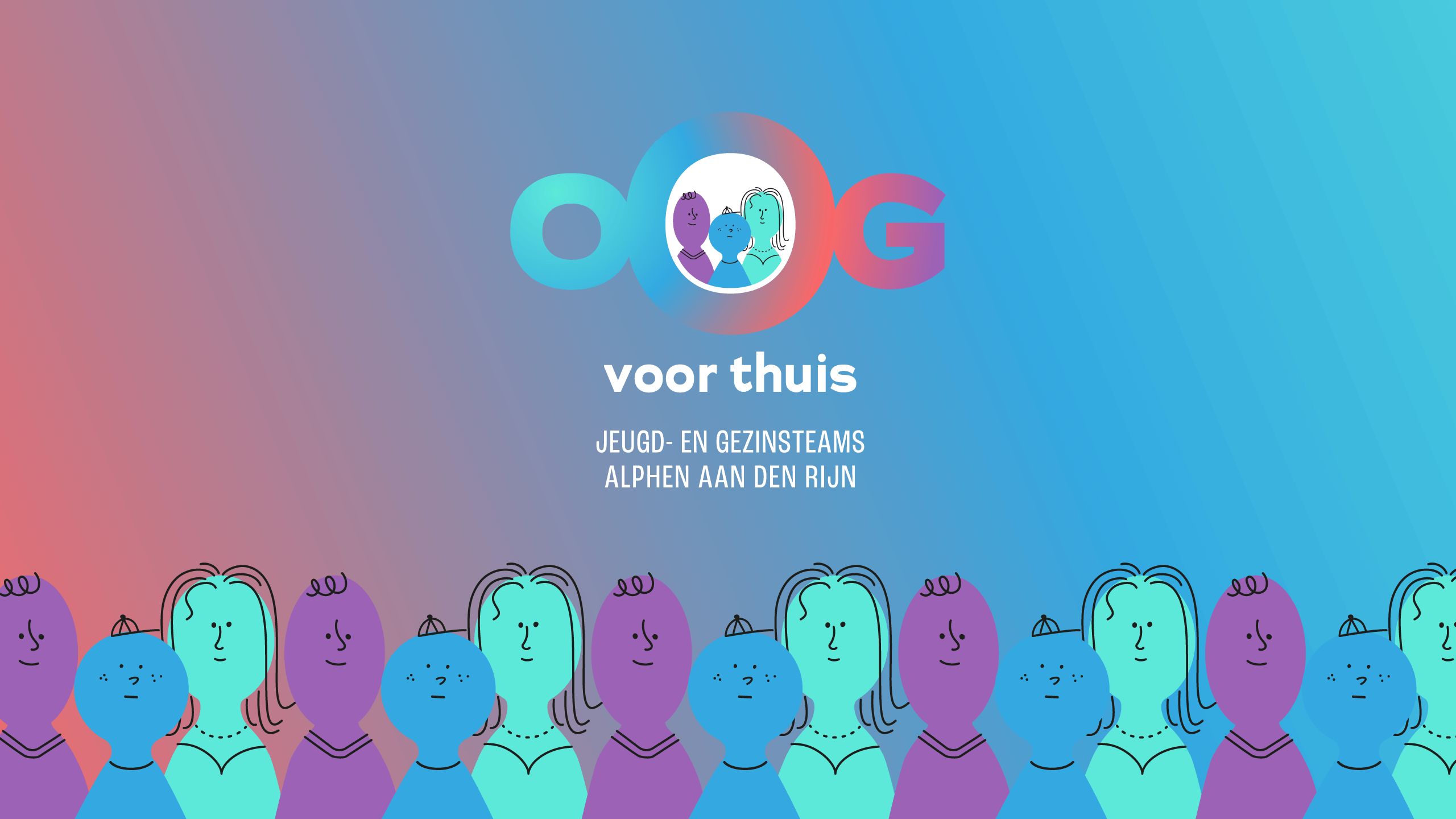 Uit de namenworkshop kwam een top 3 waar iedereen uit de gemeente op kon stemmen via een door ons gemaakte landingspagina. En het werd… Oog voor Thuis! Een mooie naam die duidelijk maakt waar de organisatie voor staat: oog voor de jeugdige, oog voor het gezin en oog voor de medewerker. Voor het logo lieten we ons inspireren door de tekeningen die de kinderen hadden gemaakt. We borduurden daarbij voort op de uitstraling die we al hadden ontwikkeld voor ‘the time being’. Want ook toen er nog geen naam was, moest er al gecommuniceerd worden.