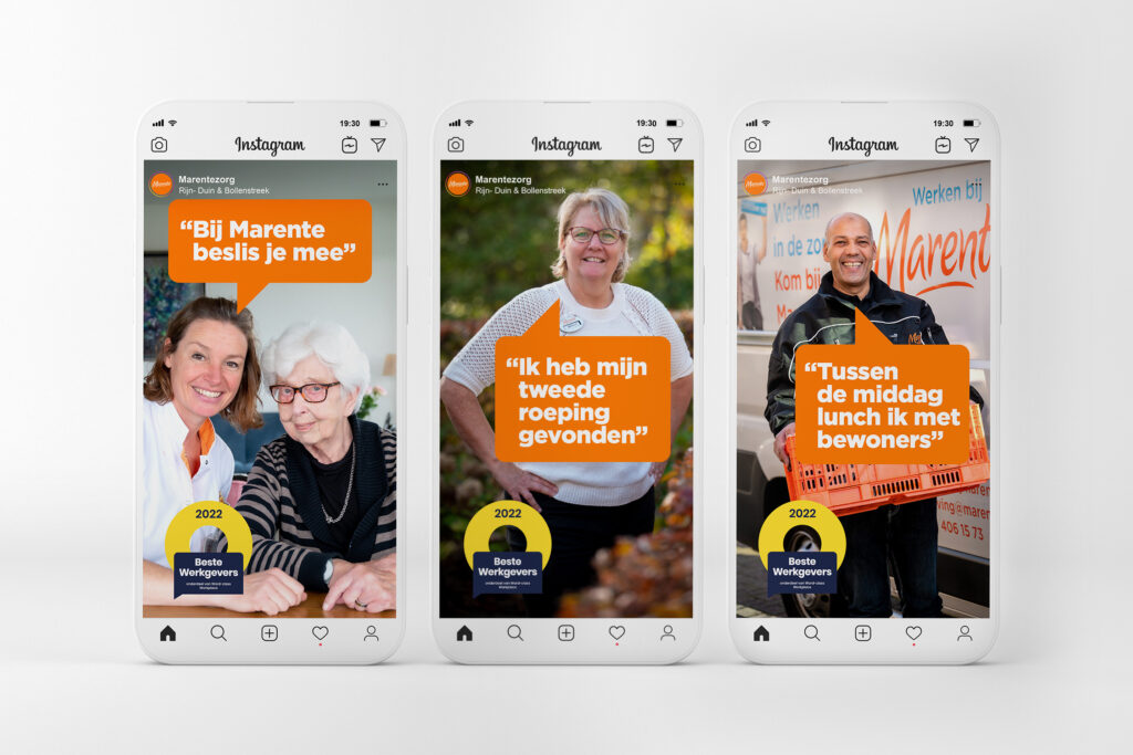 Nieuwe collega’s zijn in de zorg altijd welkom en daarom vroeg Marente ons om een awareness-campagne te starten. De boodschap: ‘Marente is alweer Beste Werkgever!’