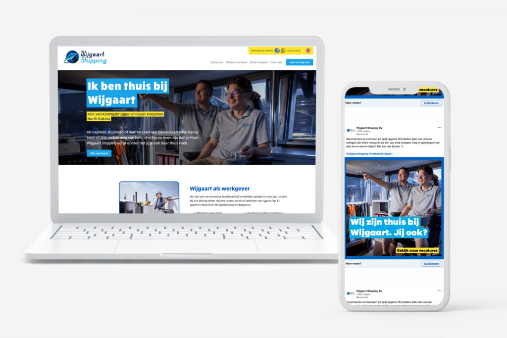 Wijgaart Shipping zoekt kapiteins, stuurmannen en matrozen voor haar binnenvaartschepen. Een lastige opgave, zou je misschien denken in de huidige tijd. Toch lukte het om binnen een maand een groot aantal sollicitanten te werven. Het succes? Een goede campagne met aansprekend concept, storytelling en slimme verspreidingsstrategie!
