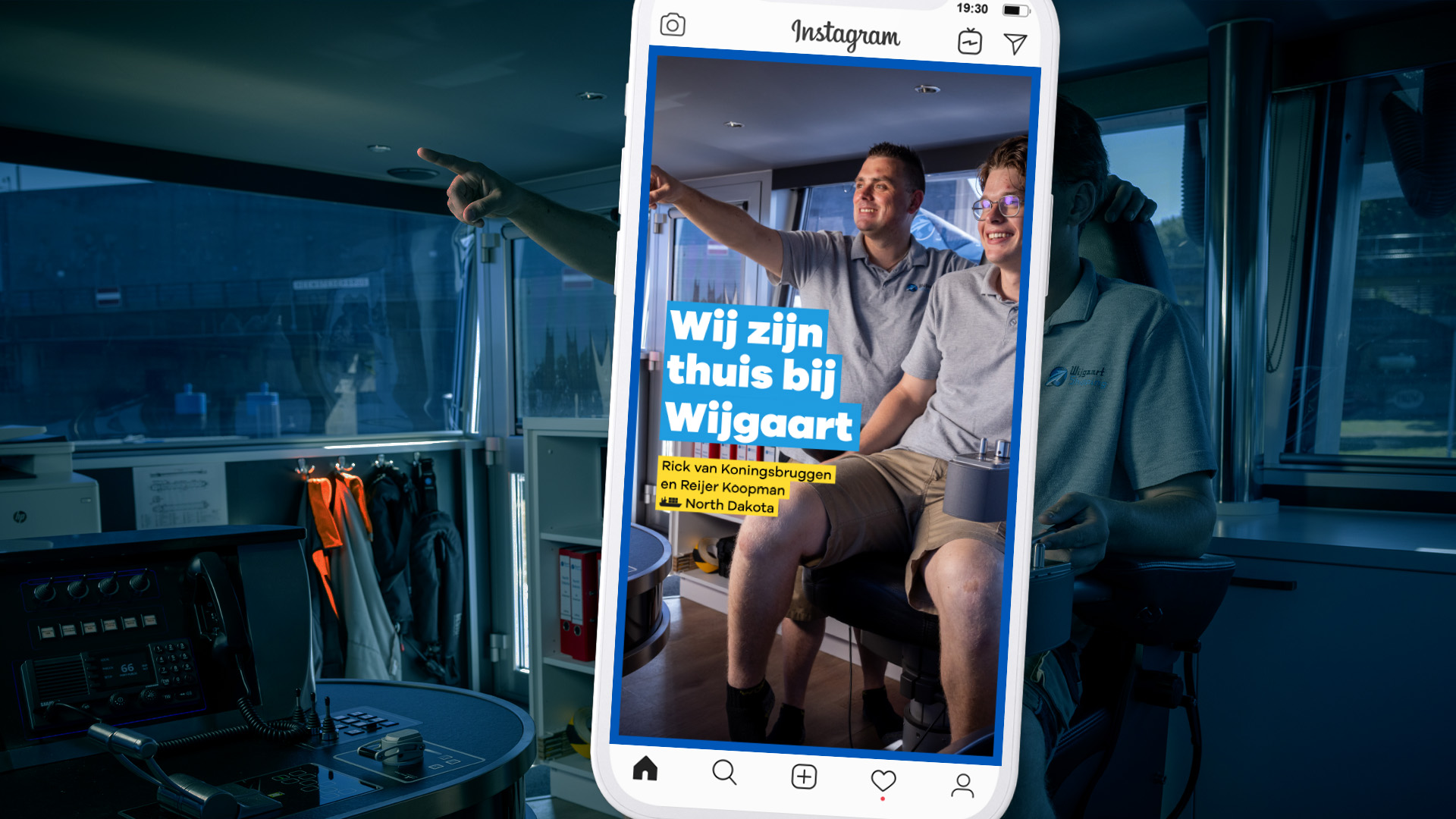 Als binnenvaartkapitein, -stuurman of -matroos ben je twee of drie weken weg van huis. Hoe fijn – en belangrijk! – is het dan, als je je thuis voelt op het schip waar je aan het werk bent? Daar spelen we met het concept ‘Thuis bij Wijgaart’ – met aandacht voor de balans tussen thuis en privé – op in. Wie anders kan vertellen waarom Wijgaart je thuis laat voelen op een schip, dan de huidige medewerkers? Daarom vormt storytelling een belangrijk onderdeel van de personeelswervingscampagne. In videovorm, want de doelgroep is doorgaans visueel ingesteld.