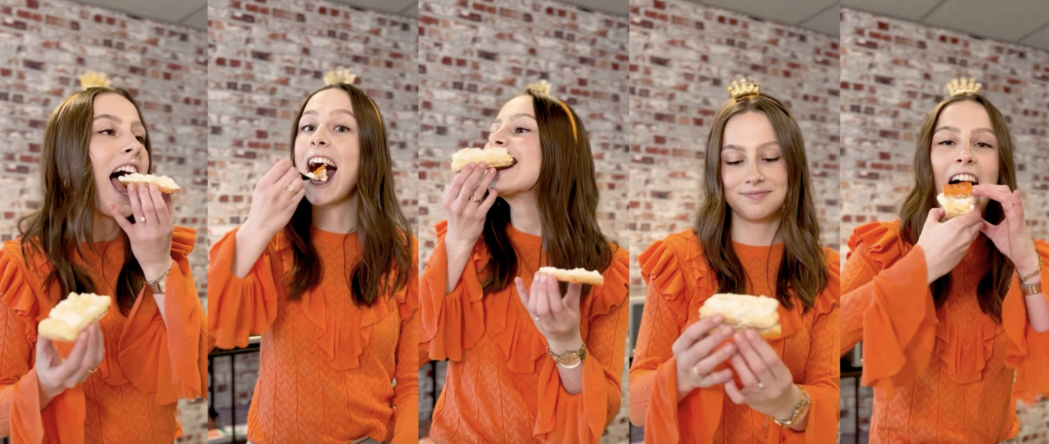 ‘Je geniet meer van de tompouce van jouw ambachtelijke bakker’, is de boodschap van de campagne. We maakten een toffe video voor Instagram Reels die de veelzijdigheid van het eten van een tompouce laat zien. Rond Koningsdag adverteren we de video op Facebook en Instagram. Ook zetten we de socialpostmaker in, waarmee bakkers een gepersonaliseerde social post in campagnestijl kunnen maken. We verzorgden de fotografie (en de modellen, in de persoon van Janneke en Amber). En de SAB zet landelijke banners in op NU.nl en AD.nl, waarvoor wij de vormgeving verzorgden.