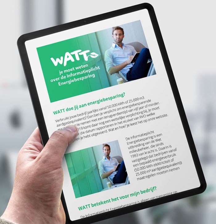 Vrhl ontwikkelde een campagne met het sterke concept ‘WATT’. WATT is de informatieplicht energiebesparing? WATT betekent dit voor mijn bedrijf? En WATT moet ik ermee als ondernemer?